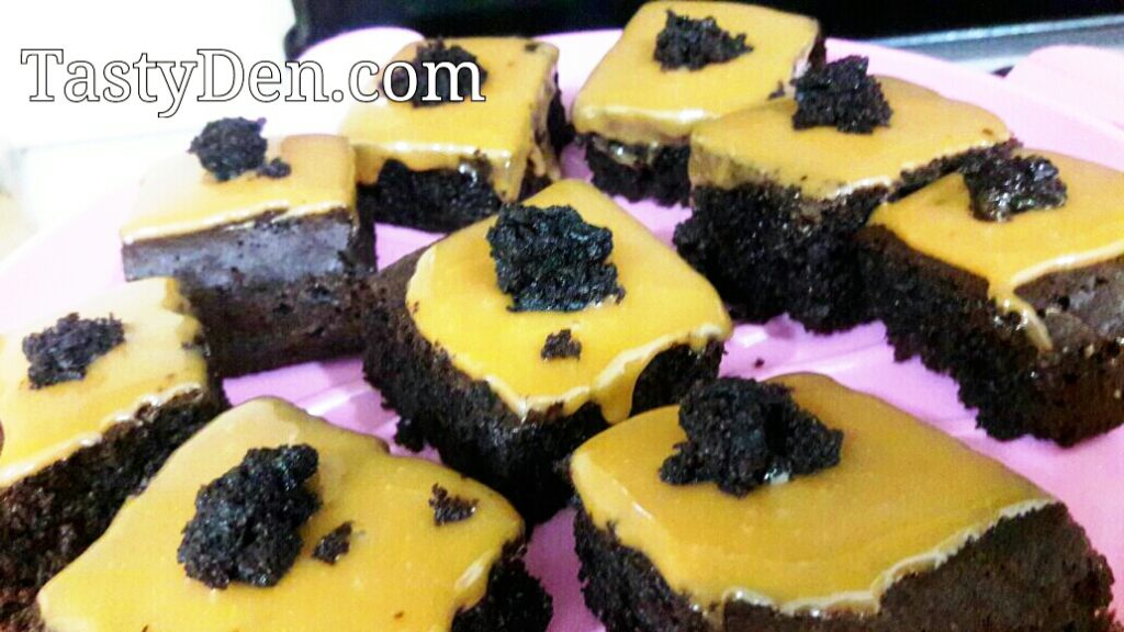 This is a easy chewy nutty brownie recipe that is served with caramel frosting. You can make it in no time yet its delicious and chewy.